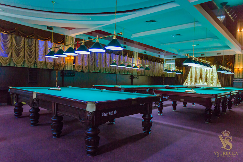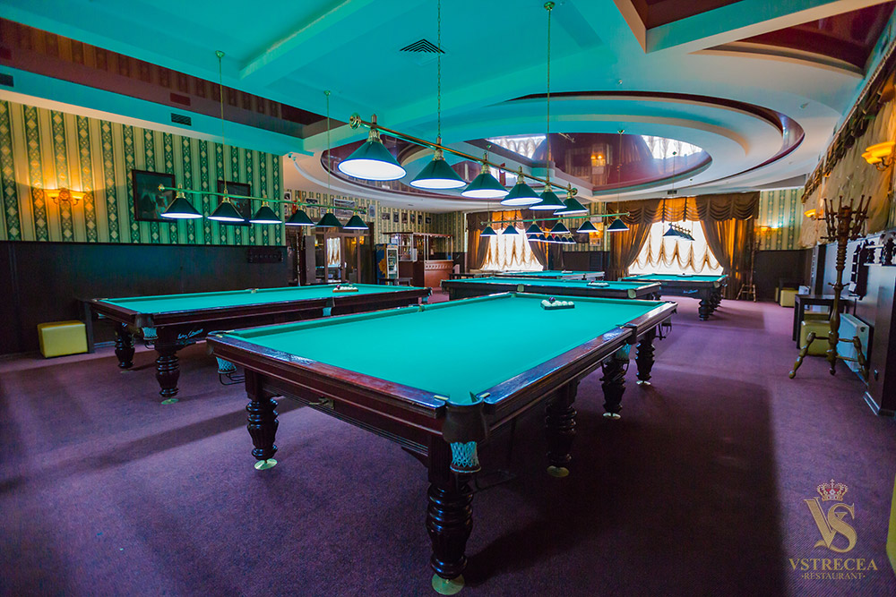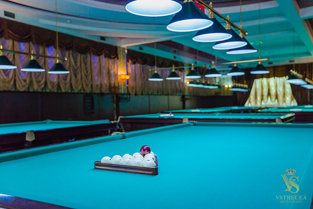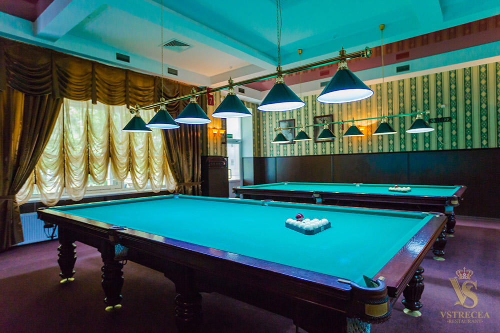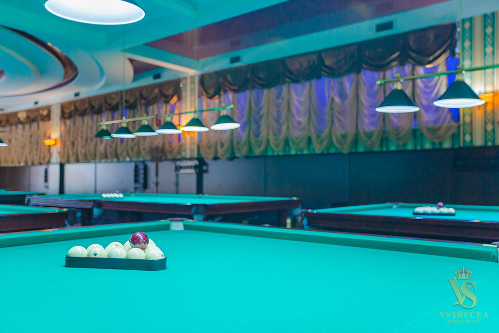 Biliardul este un sport extrem de interesant, pe cât de simplu, pe atât de complicat, care tentează atenția foarte multor personae, stimulează gandirea logică și rezistența psihologică. Dacă sunteți amatori de billiard sau vă doriți să vă învățați să jucați, sunt invitați la clubul de biliard Vstrecea, care este considerat unul dintre cele mai bune din Bălți. În timp ce faceți o pauză de la munca grea și rutina zilnică, vă așteptăm la noi, pentru a practica ceea ce vă place, în timp ce vă relaxați. La Vstrecea, aveți posibilitatea de a organiza turneuri prietenoase de billiard, datorită celor 12 mese special echipate cu accesorii de cea mai înaltă calitate. De asemenea, puteți alege tipul de biliard în care veți juca: rusesc sau american. Vă așteptăm la billiard să petreceți timpul util și interesant alături de prieteni sau familie.