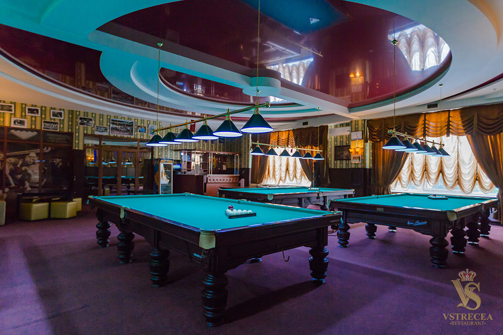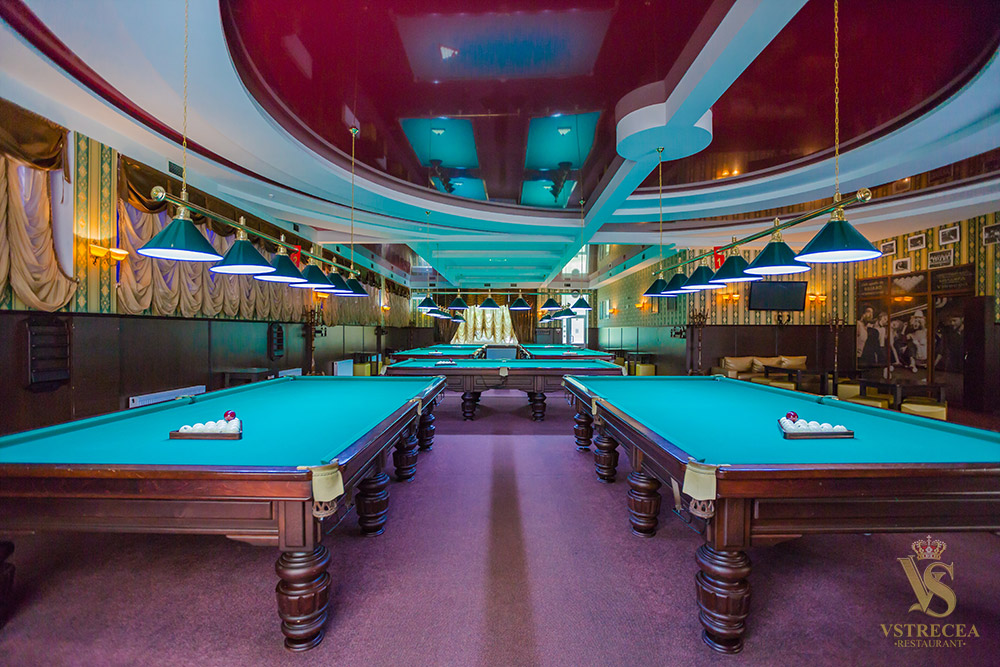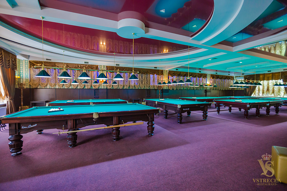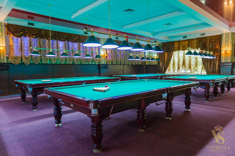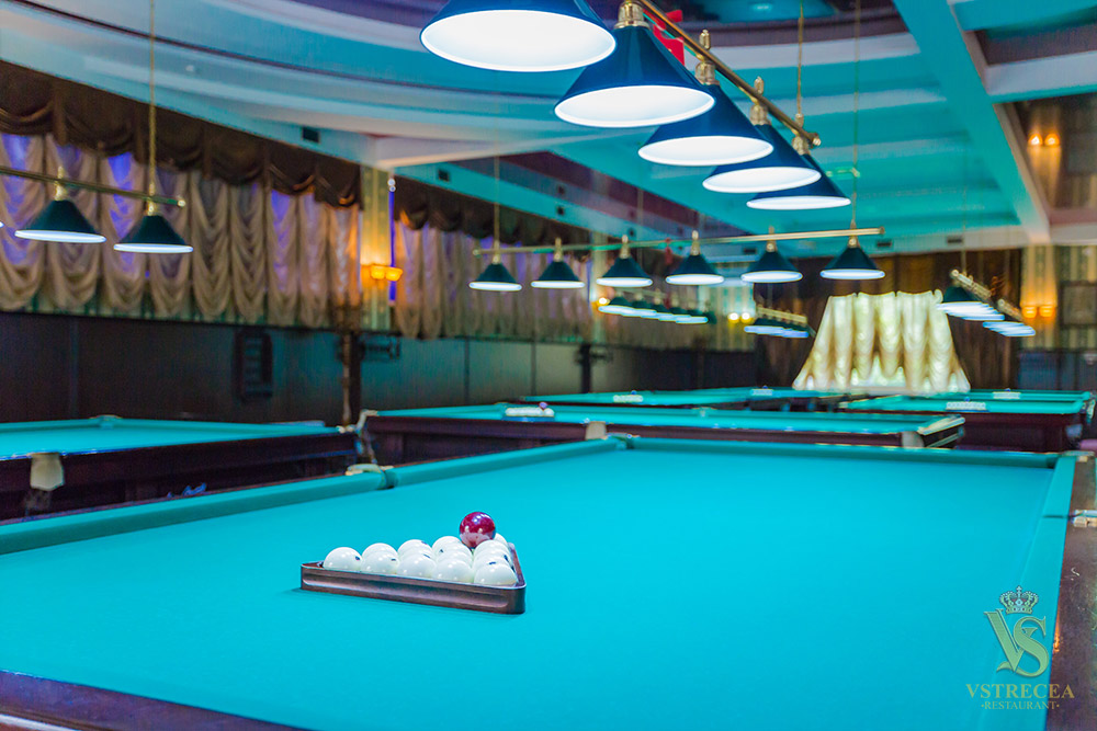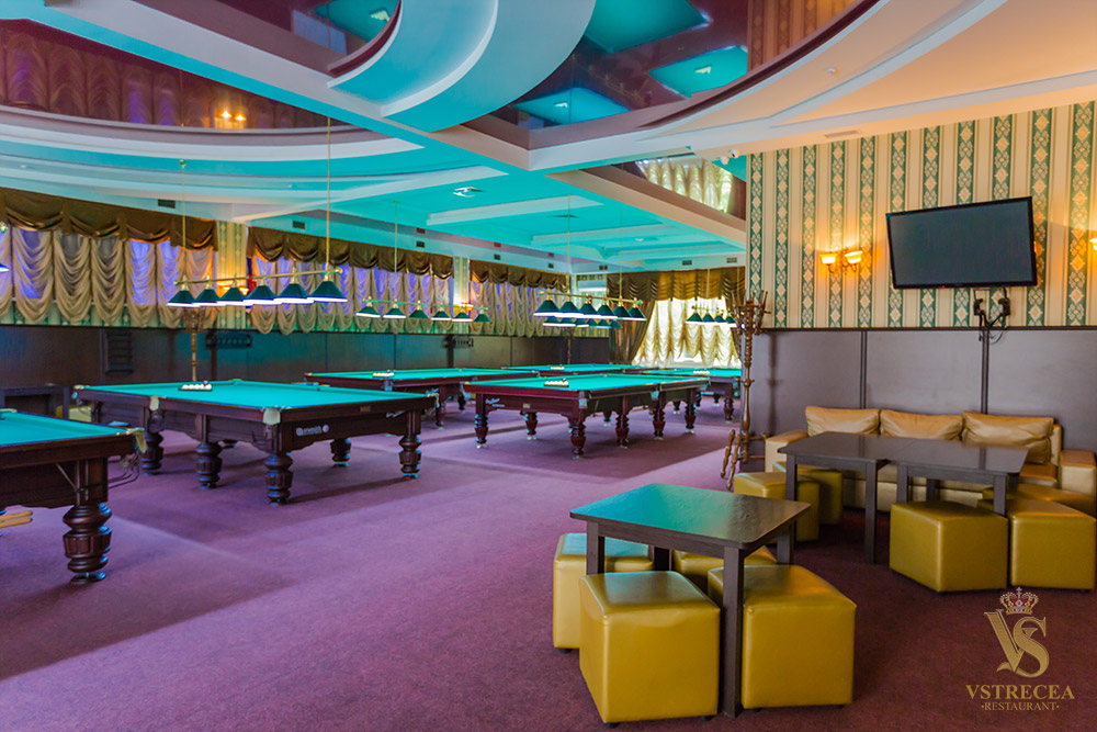 Biliardul este un sport extrem de interesant, pe cât de simplu, pe atât de complicat, care tentează atenția foarte multor personae, stimulează gandirea logică și rezistența psihologică. Dacă sunteți amatori de billiard sau vă doriți să vă învățați să jucați, sunt invitați la clubul de biliard Vstrecea, care este considerat unul dintre cele mai bune din Bălți. În timp ce faceți o pauză de la munca grea și rutina zilnică, vă așteptăm la noi, pentru a practica ceea ce vă place, în timp ce vă relaxați. La Vstrecea, aveți posibilitatea de a organiza turneuri prietenoase de billiard, datorită celor 12 mese special echipate cu accesorii de cea mai înaltă calitate. De asemenea, puteți alege tipul de biliard în care veți juca: rusesc sau american. Vă așteptăm la billiard să petreceți timpul util și interesant alături de prieteni sau familie.
