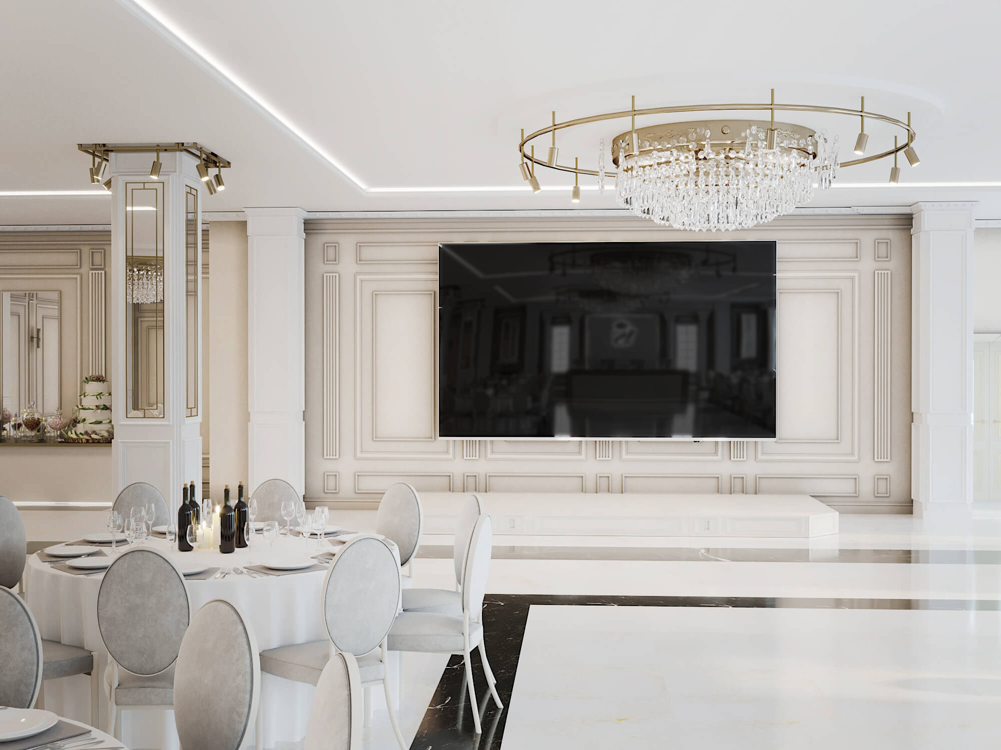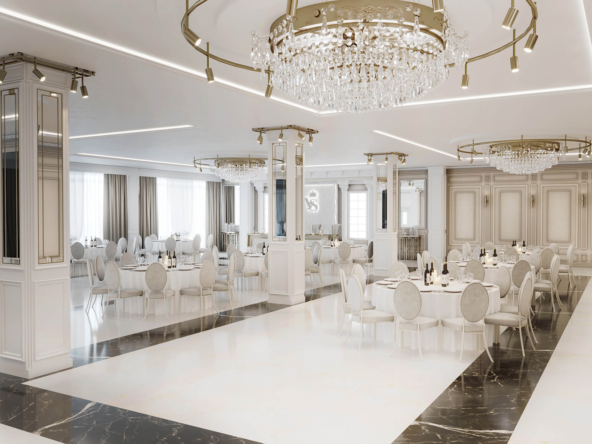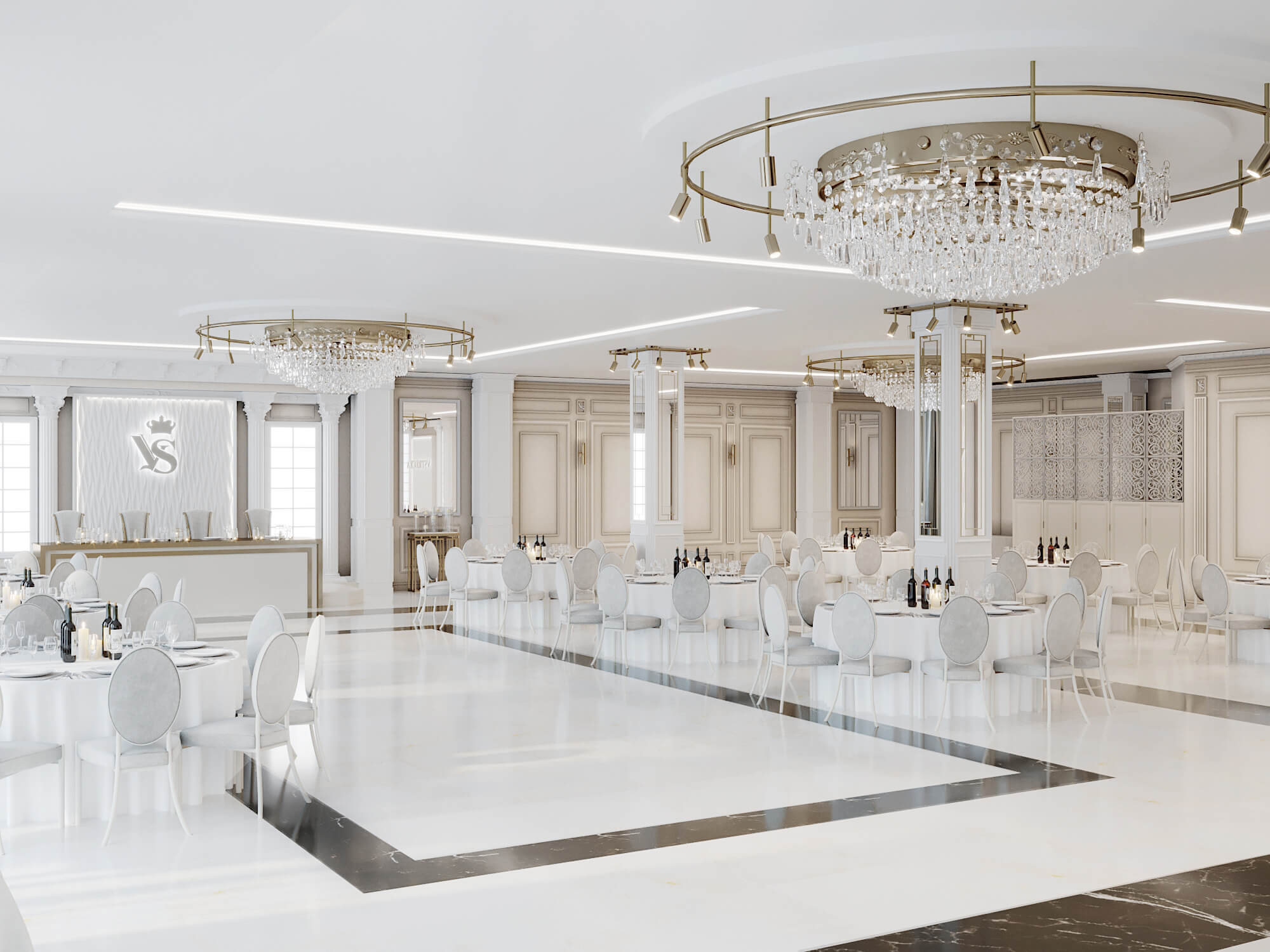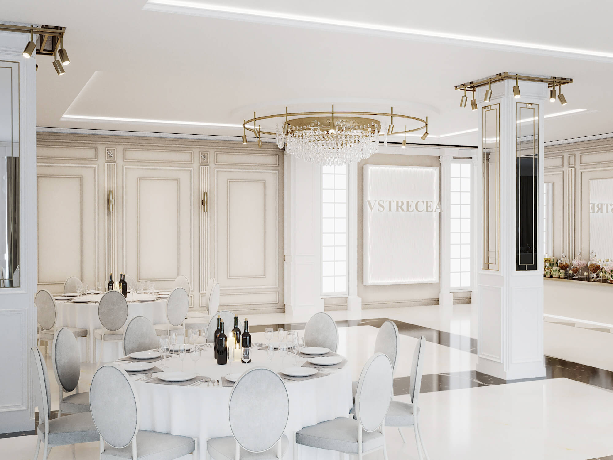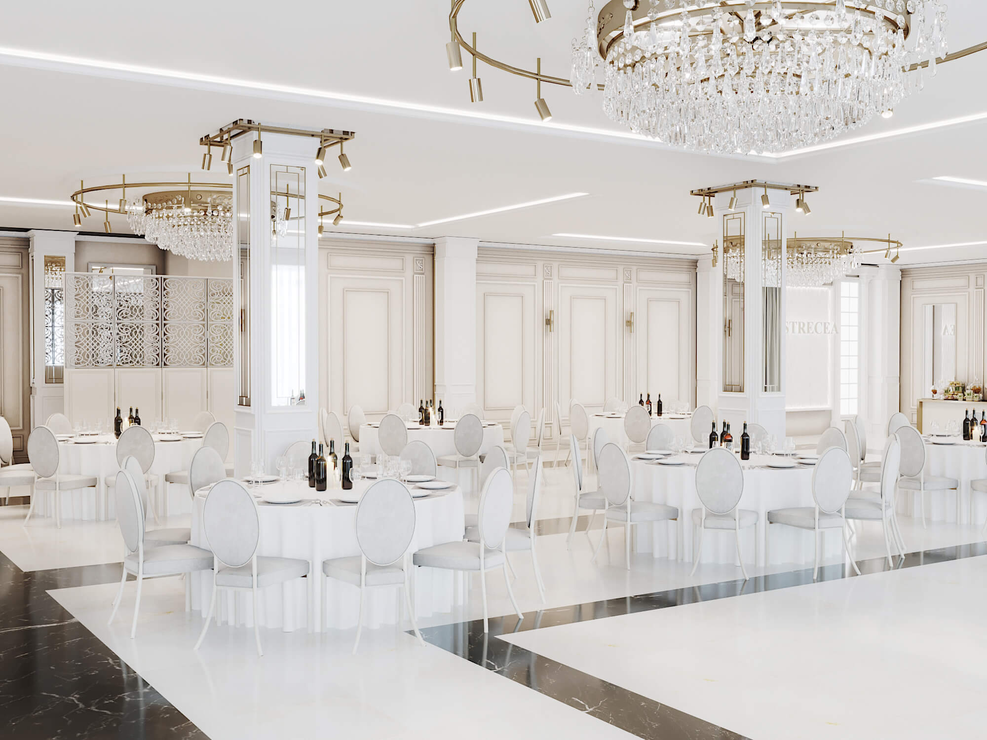 With a capacity of up to 250 guests, the hall can accommodate important events in your life, such as weddings, baptisms, anniversaries and corporate parties. The hall offers your event sense, thanks to architecture to the smallest details. It doesn`t require many decor elements, because it is extremely stylish. This hall meets all the customer needs. However, you can arrange your room depending on the theme that you have chosen for your wedding. Once you have arrived, you will be able to enjoy from facilities such as: air conditioning, air filtration, luminosity, locker rooms and parking.